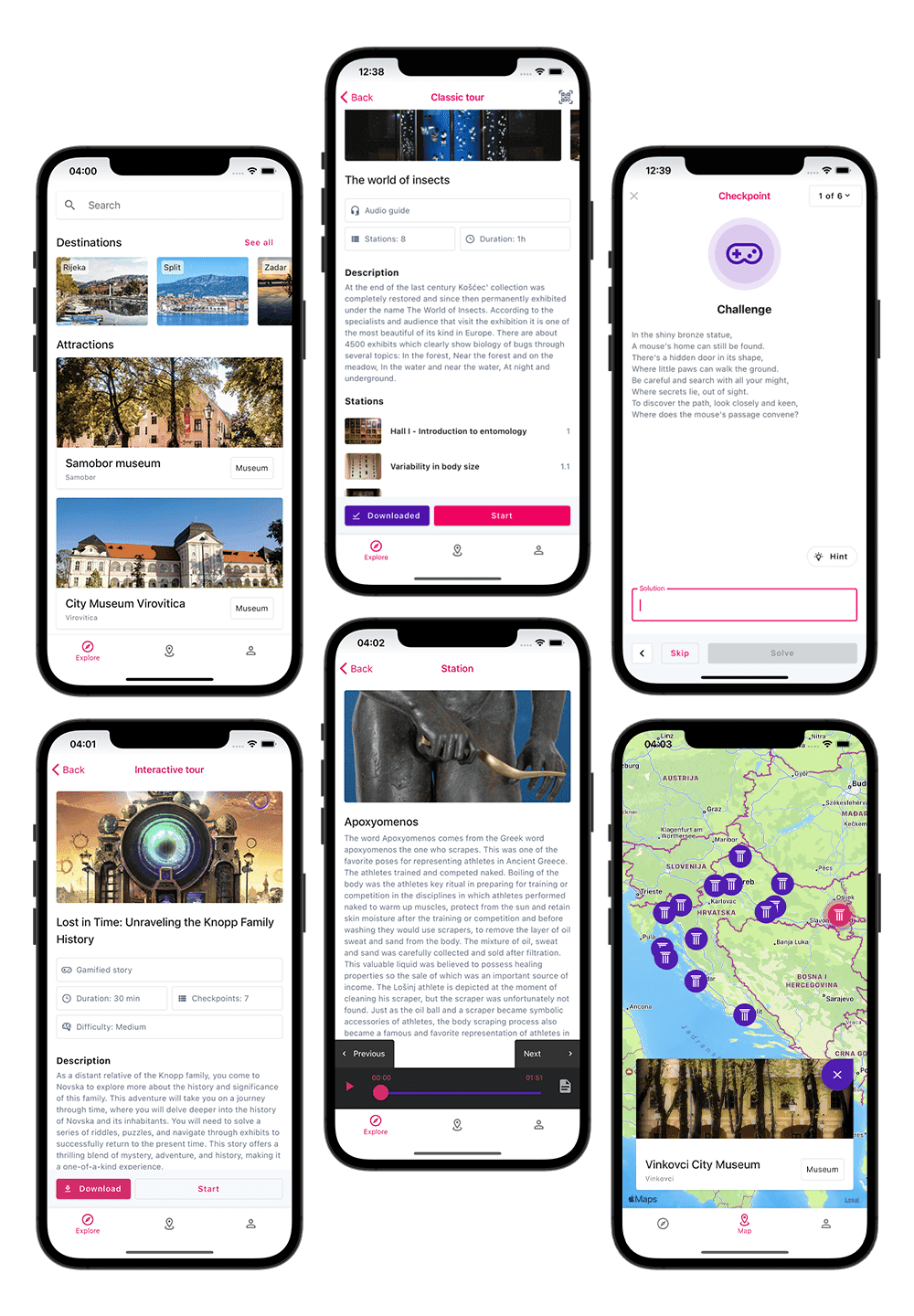 Follow points of interest, find clues, and solve a range of challenges to conclude the story and unlock interesting facts.